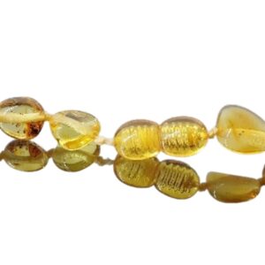 Benefícios de uso: anti-inflamatório natural , adequado para as dores dos dentes dos bebés. Associado à energia do sol, o âmbar traz vitalidade e energia.