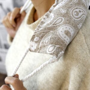 Bolsas térmicas terapêuticas com estampas diversas com propriedades termais e calmantes. Eles podem ser usados ??quentes ou frios, colocando-os no frio ou no microondas por alguns minutos. São 100% naturais, com cabo em corda e fecho de velcro.