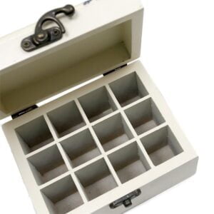 Caixa de aromaterapia desenhada para guardar até 12 frascos de 10 ml, ideal para decorar qualquer recanto da sua casa . Com estampas florais com acabamento em verniz acrílico para proteger a tinta, essas caixas são projetadas para conter frascos de aromaterapia de 10ml de nossos óleos essenciais.