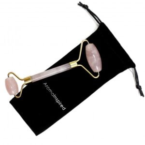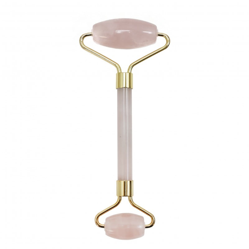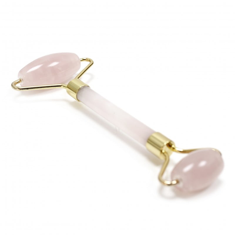 Massageador facial com rolo de quartzo rosa