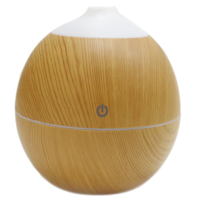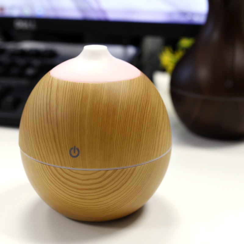 Humidificador esférico ultrassônico imitação de madeira de pinho.