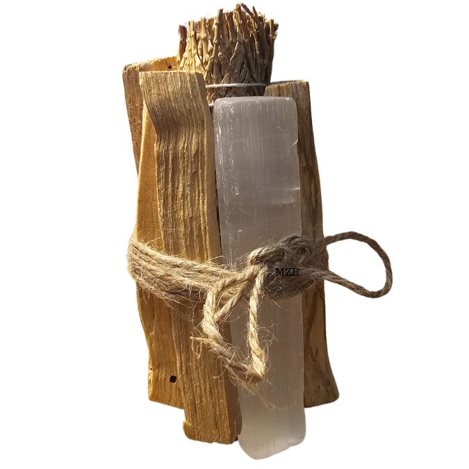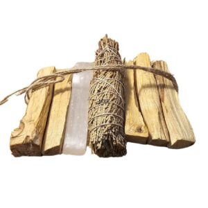Descubra as energias sagradas com o nosso Kit de Limpeza e Purificação, composto por 5 unidades de Pau Santo, reconhecido pelas suas propriedades espirituais e aroma purificador. A barra de Selenite, com a sua vibração elevada, promove clareza mental e espiritual. A tocha de Cedro, símbolo de proteção, proporciona uma atmosfera de tranquilidade.