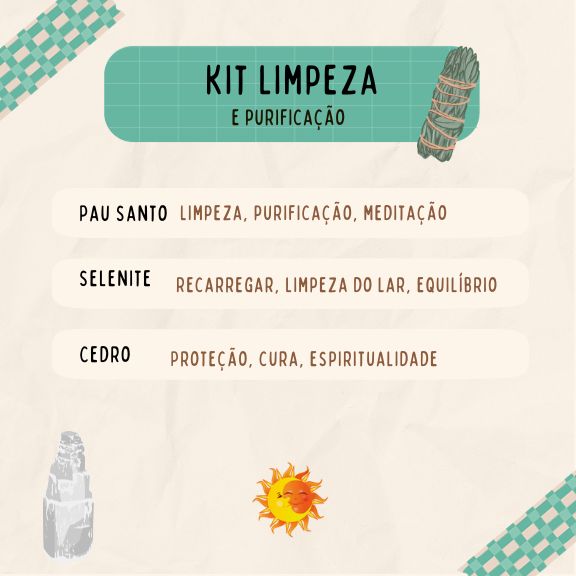 O número 7 preside sobre este conjunto (Total de unidades do KIT), simbolizando a perfeição espiritual. Cada peça, do Pau Santo à tocha de Cedro, harmoniza-se para criar uma experiência de limpeza profunda e renovação espiritual. Deixe a magia do número 7 guiar a purificação da sua energia e do seu espaço.