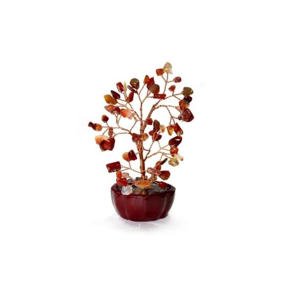 Bela árvore pequena com 60 pedras de Ágata Cornalina. Os ramos são moldáveis ??para colocar ao seu gosto e, naturalmente, nunca terá de os podar ou regar, montadas em uma pequena base de porcelana.