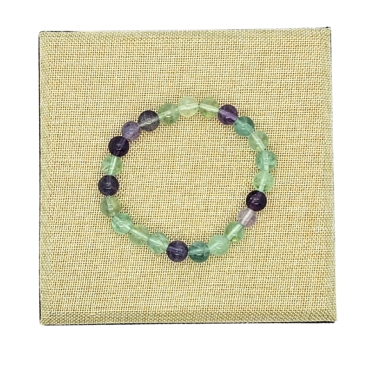 Pulseira de pedras naturais de Fluorita (Harmonização e Clareza Mental). A Fluorita é reconhecida por suas propriedades de harmonização energética e capacidade de promover a clareza mental.